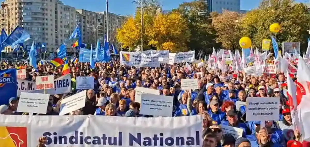 12 noiembrie 2025 | Miting de protest în Piața Victoriei din București și marș până la Piața Constituției: ,,Sărăcirea populației a devenit politică de stat”. Revendicările Blocului Național Sindical