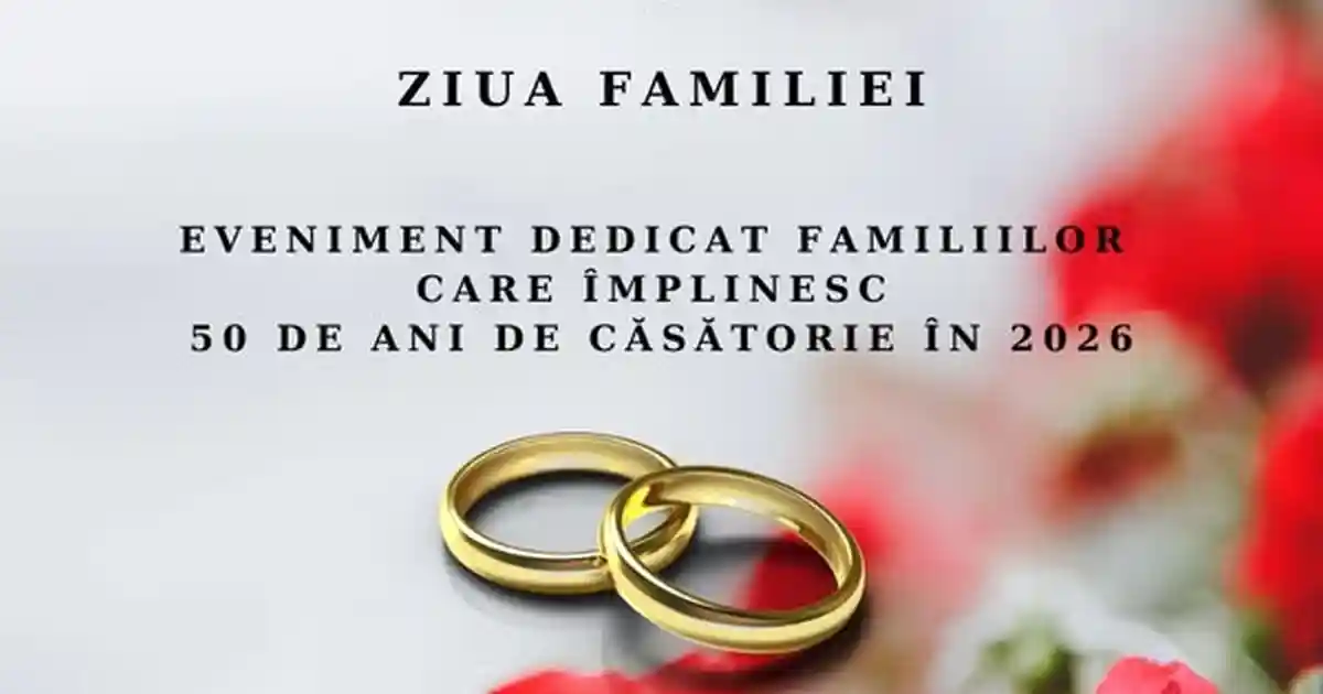 Primăria municipiului Aiud organizează în data de 15 mai 2026 evenimentul „Ziua Familiei”, în cadrul căruia vor fi sărbătorite familiile care împlinesc 50 de ani de la căsătorie anul acesta.