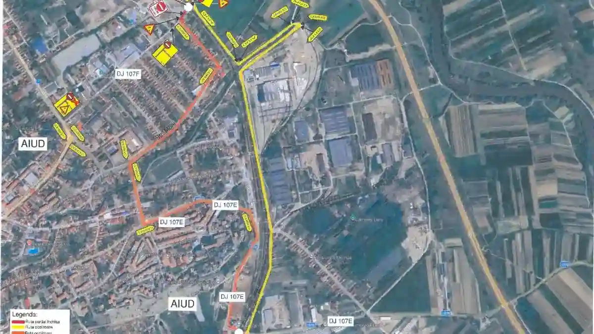 Circulația rutieră se va desfășura pe ruta ocolitoare DJ 107D, str. Morii, str. Stadionului, DJ 107E, traversare calea ferată str. Ion Creangă, str. Hotar (vecinătatea Prebet și vecinătatea grădinii Penitenciarului).