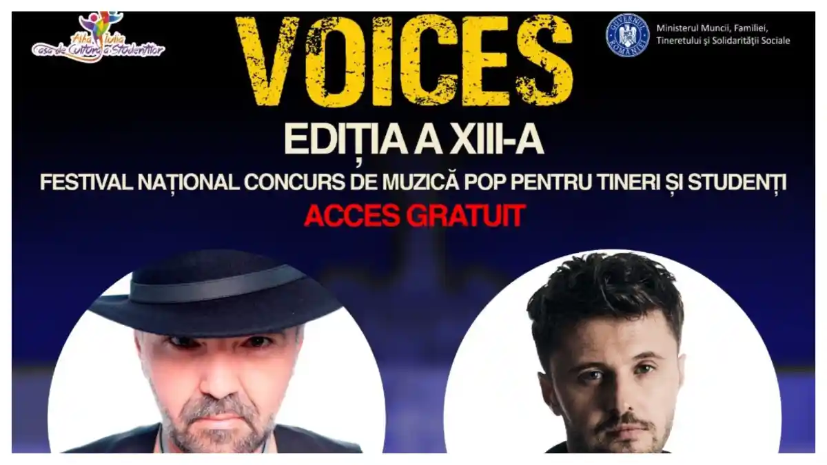 Casa de Cultură a Studenţilor Alba Iulia, cu sprijinul Ministerului Muncii, Familiei, Tineretului și Solidarității Sociale, vă invită, în perioada 5-6 noiembrie 2025, la FESTIVALUL NAŢIONAL CONCURS DE MUZICĂ POP PENTRU TINERI ȘI STUDENȚI „VOICES”, ediția a XIII-a.