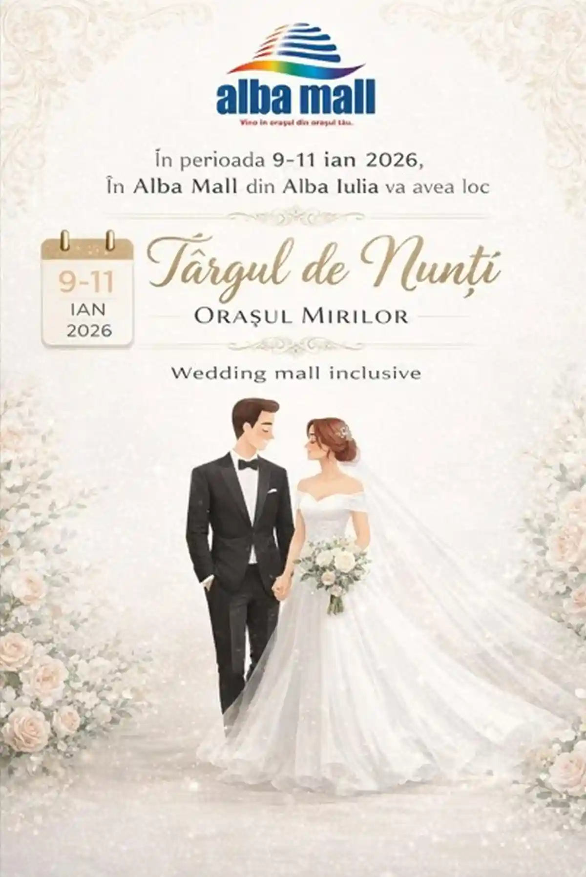 9-11 ianuarie 2026 | Orașul Mirilor – Târgul de Nunți din Alba Mall: Rochii de mireasă, costume, meniuri rafinate, fotografi profesioniști și DJ, pentru o nuntă de vis