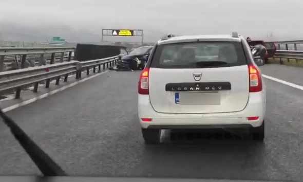 INCENDIU la un autoturism pe autostrada A1, sensul de mers Sibiu – Sebeș, azi-noapte: Mașina a ars ca o torță...