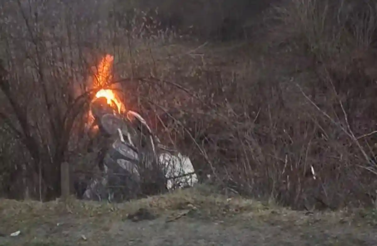 Este vorba despre un accident urmat de incendiu, un autocamion încărcat cu piatră, care s-a răsturnat într-o vale la o diferență de nivel de aproximativ 15m.