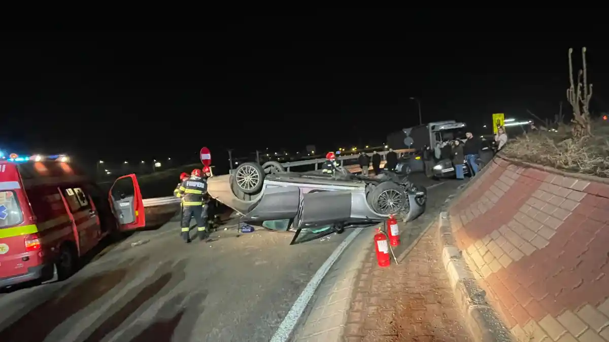 ACCIDENT în Sebeș: Autoturism răsturnat în zona sensului giratoriu de la Kronospan