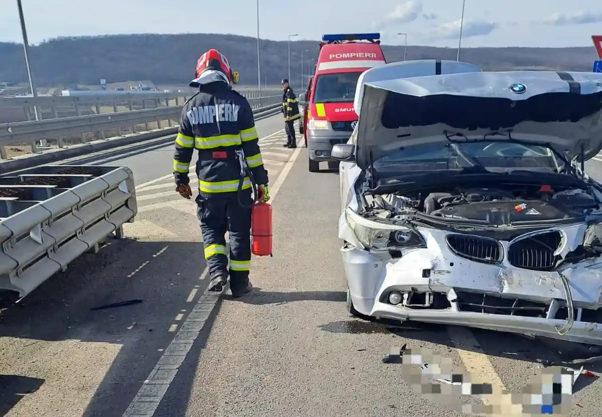 ACCIDENT pe autostrada A10, la Aiud: Un BMW s-a făcut praf după coliziunea cu o altă mașină