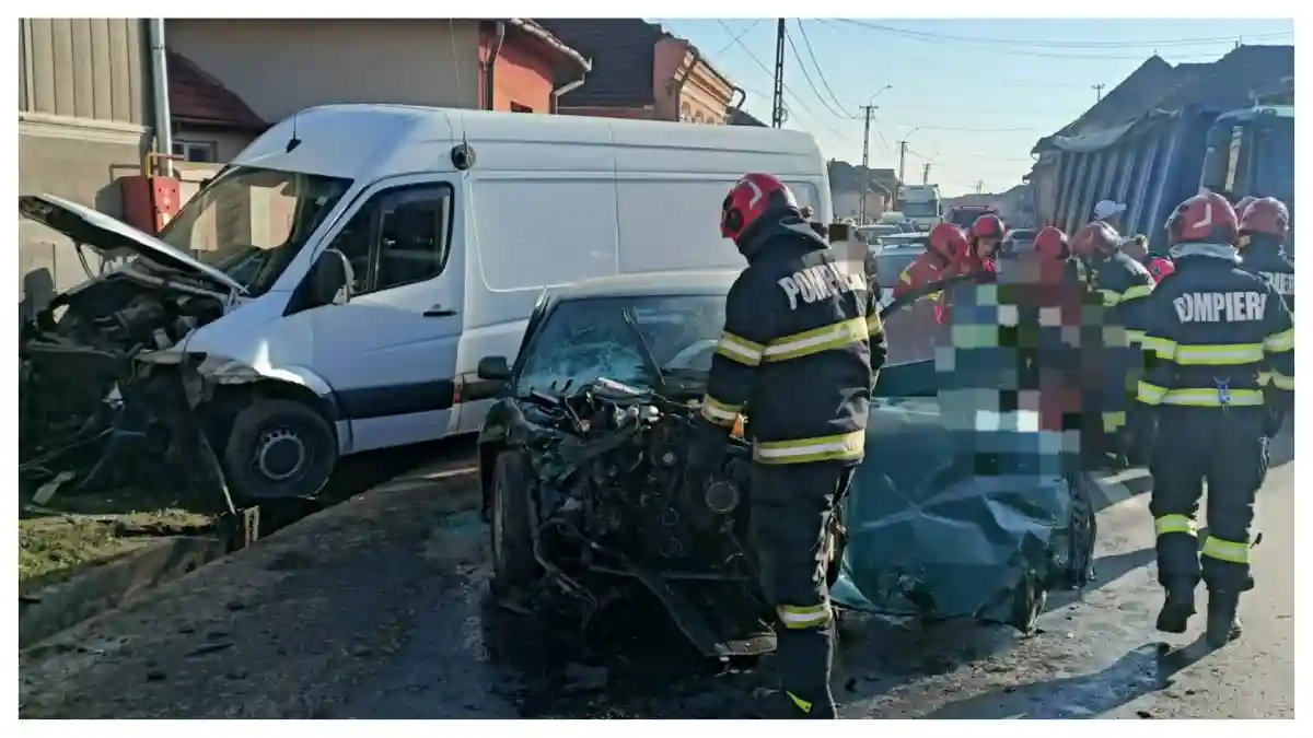 În accident sunt 3 auto implicate (1 autoutilitară și 2 autoturisme).