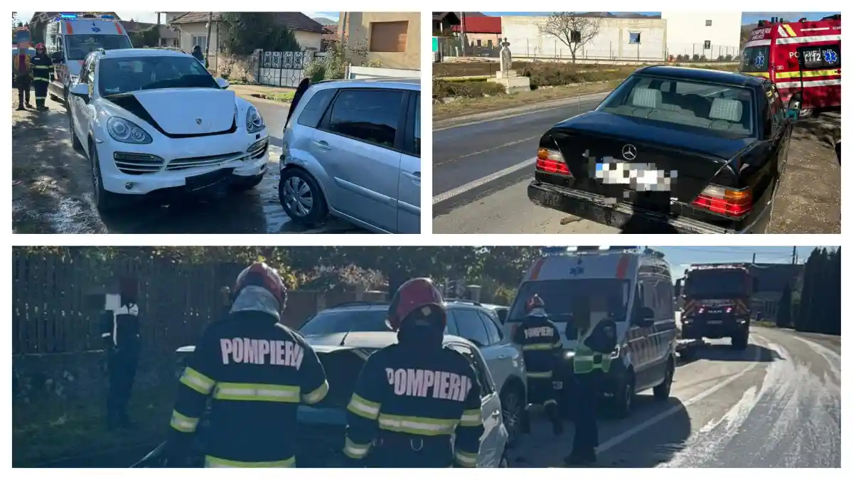 FOTO | ACCIDENT rutier într-o comună din județul Alba. Trei autoturisme implicate: Pompierii intervin de urgență