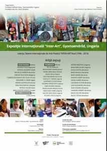 Expoziţia Internaţională Inter Art, colecţia Taberei Internaţionale de Artă Plastică “Iter-Art”Aiud (1996 – 2013), va avea loc în data de 7 martie, cu începere de la ora 17.00, la Galeria “Vidovszky Béla”,, Gyomaendrőd, Ungaria. În deschiderea expoziţiei, un cuvânt de salut va fi rostit de Kóris Györgyné, directorul galeriei “Vidovszky Béla”, după care va vorbi Ştefan Balog, preşedintele Fundaţiei Inter-Art Aiud. Expoziţia va fi prezentată de Ioan Hădărig, directorul artistic-Fundaţia Inter-Art, iar de muzică se va ocupa Papp Gábor şi Gulyás Dóra.