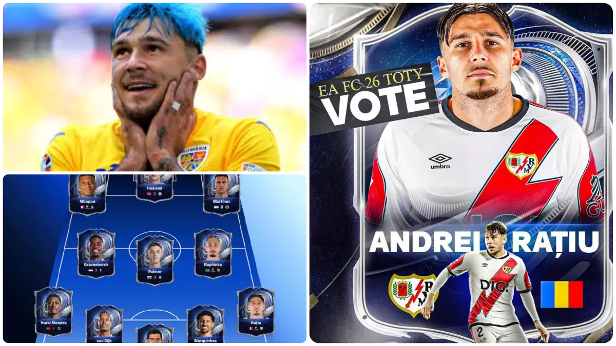 Andrei Rațiu are onoarea de a se afla în premieră pentru România printre jucătorii nominalizați pentru Echipa Lumii FC 26, în cel mai cunoscut simulator de fotbal. Cei de la EA Sports au dat startul la votarea celor mai buni dintre cei buni, iar internaționalul tricolor se regăsește pe lista nominalizaților, alături de nume mari ale fotbalului mondial. Team Of The Year” (TOTY) este denumirea utilizată în jocul EA FC 26 pentru cea mai bună echipă, formată din jucătorii care s-au remarcat și, desigur, au fost votați de iubitorii jocului. Etapa de votare a început pe 7 ianuarie și va dura până luni, 12 ianuarie.