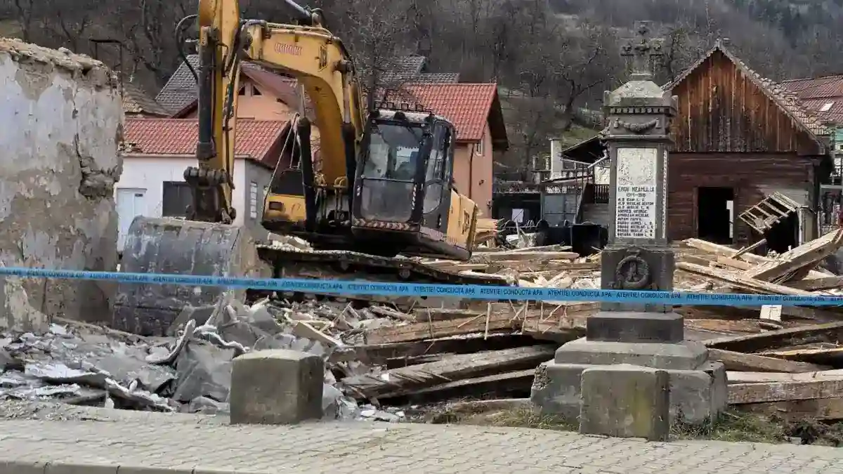 Mai multe clădiri sunt demolate într-o comună de munte din Alba: Va fi amenajat un nou centru civic