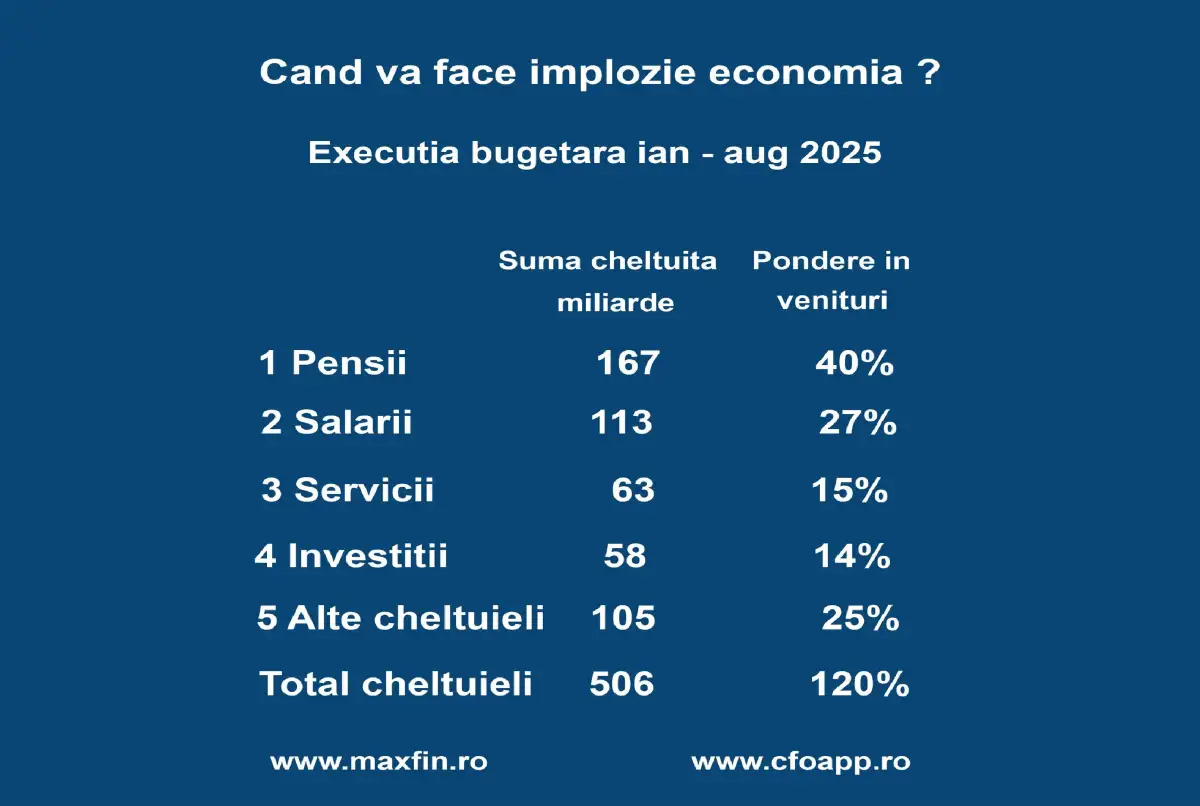 Economistul avertizează că țara „intră în perioada de sevraj economic”. „România cheltuie lunar cu peste 20% mai mult decât încasează. Din această cauză, Guvernul s-a împrumutat, de la începutul anului, suma de 209 miliarde de lei”, arată acesta.