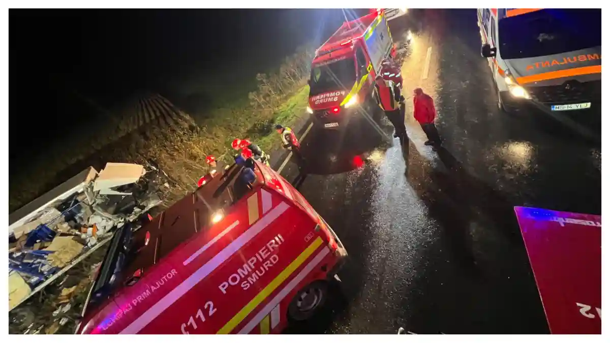 Șoferul autobasculantei, aflat în cod verde medical, a fost evaluat de echipajul SMURD. Pe durata intervenției, circulația rutieră a fost blocată pe ambele sensuri de mers, iar pompierii au asigurat măsurile specifice de prevenire a incendiilor, existând scurgeri de combustibil pe carosabil, potrivit IPJ Mureș.