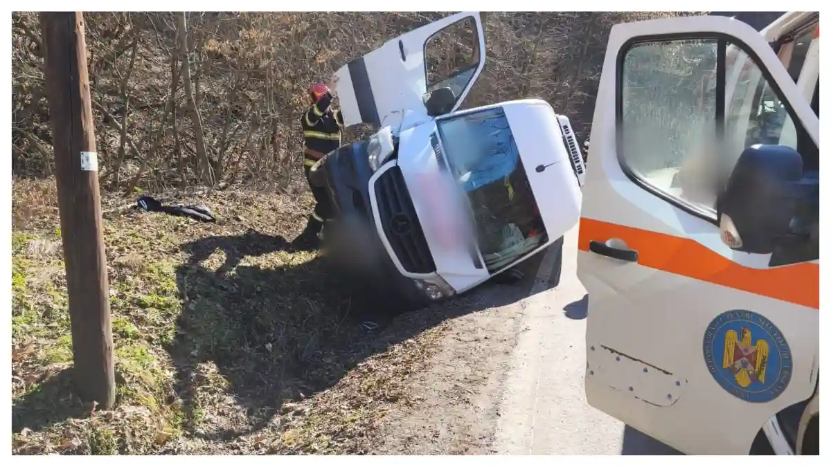 În urma impactului microbuz a fost proiectat în afara părții carosabile.
