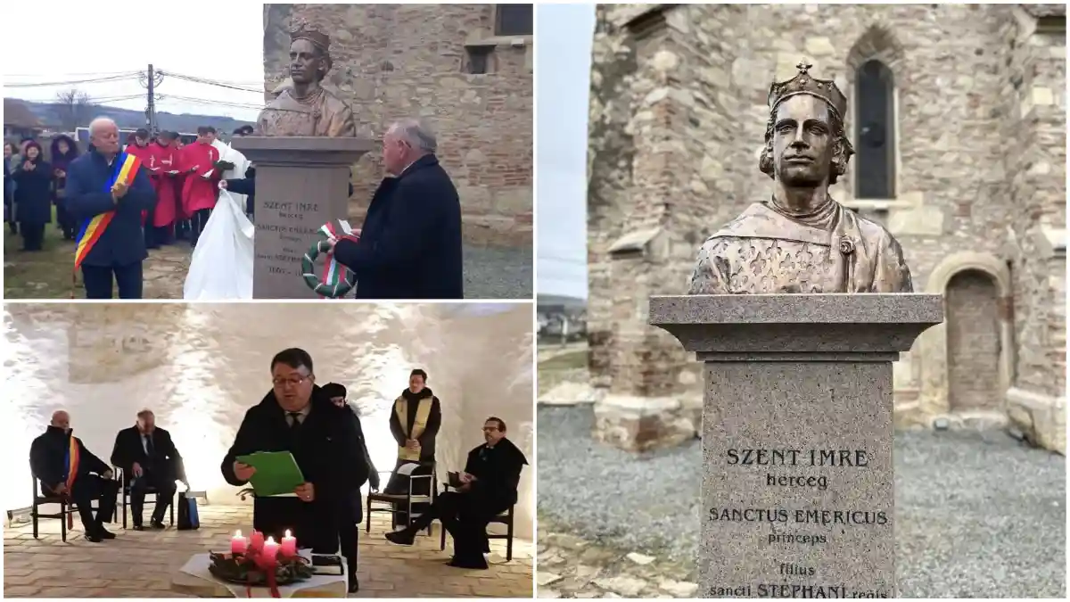FOTO | Bustul Sfântului Emeric, dezvelit în curtea Bisericii Reformate din Sântimbru. Localitatea îi poartă numele din 1238 – Villa Sancti Emerici