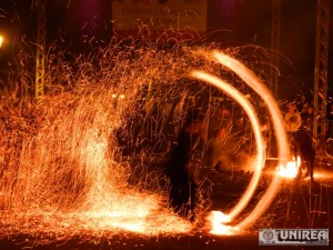 Evenimentele de sâmbătă a Zilelor Cetății – Festivalul Roman Apulum s-au încheiat incendiar cu spectacolul de animație și jonglerii cu foc al trupei de animație Sirius din cadrul Asociației culturale Bistrița Medievală.