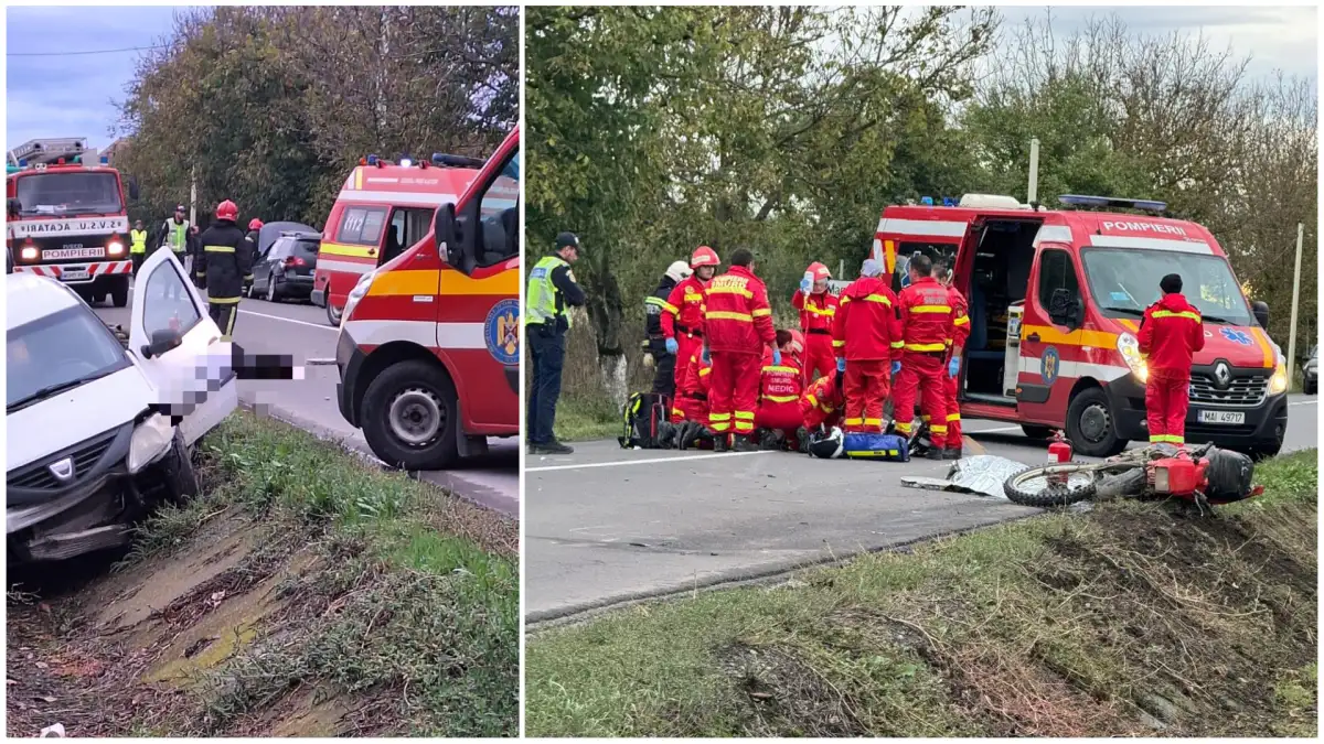 FOTO | Accident MORTAL pe DJ 151D, între două autoturisme și o motocicletă: Două persoane și-au pierdut viața