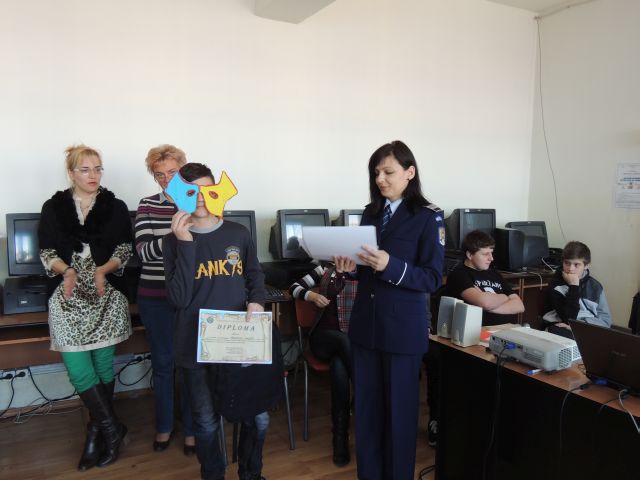 Elevi ai claselor V – VII, beneficiari ai campaniei, au fost angrenaţi într-un concurs ce a constat în realizarea unor măşti care să sugereze consecinţele unui comportament delincvent asupra evoluţiei psihice a minorilor.