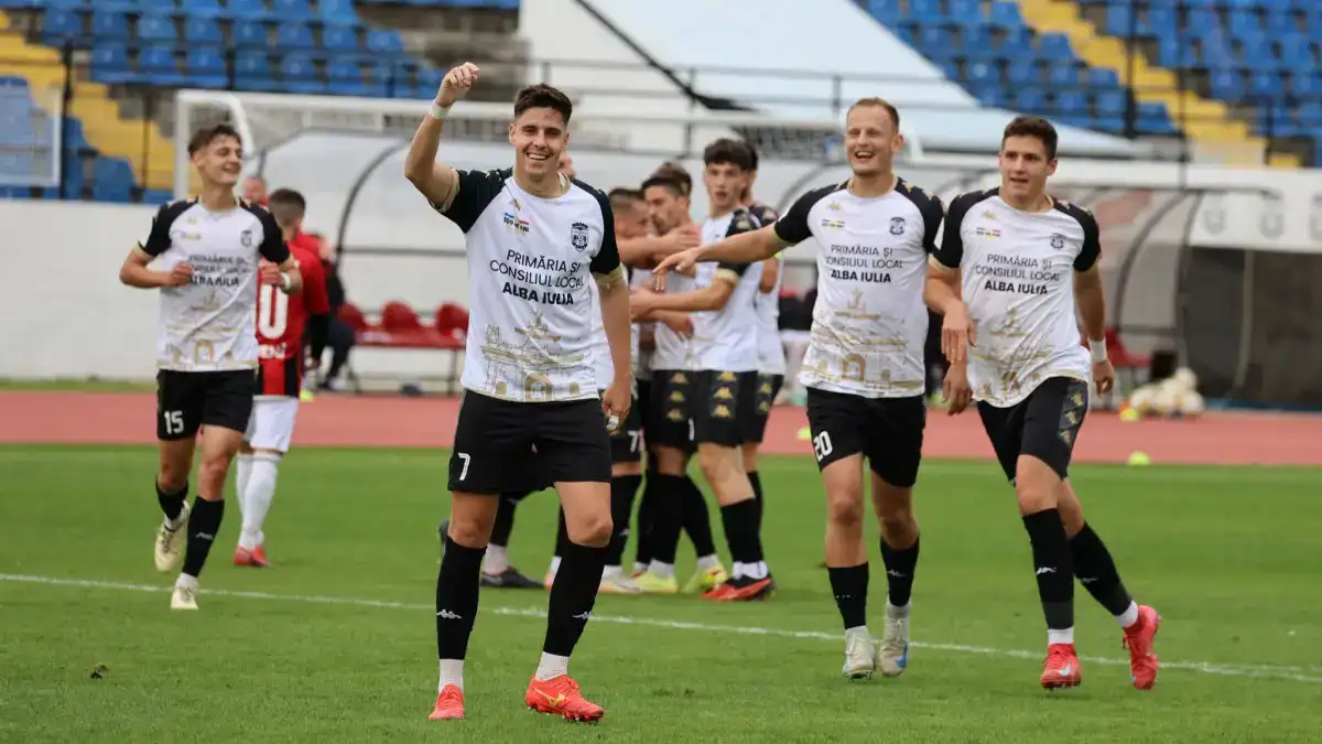 CSM Unirea Alba Iulia a reușit să se impună categoric, cu 5-0 (2-0), consolidându-și poziția de lider în campionat.