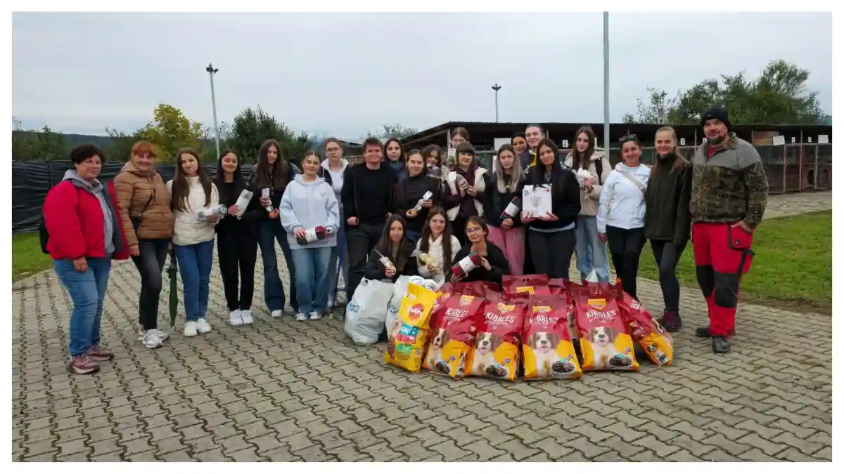 FOTO | Elevii de la Colegiul „Titu Maiorescu” din Aiud au participat la o acțiune de caritate la adăpostul de animale din oraș