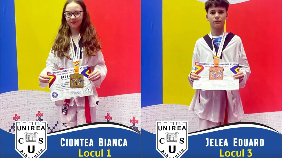Sportivii CS Unirea Alba Iulia, Bianca Ciontea și Eduard Jelea, pregătiți de antrenorul Alin Moldovan, au obținut rezultate foarte bune la Campionatul Național de Taekwondo WT 2026 – copii, juniori mici și cadeți, desfășurat în perioada 6–8 martie, la București.