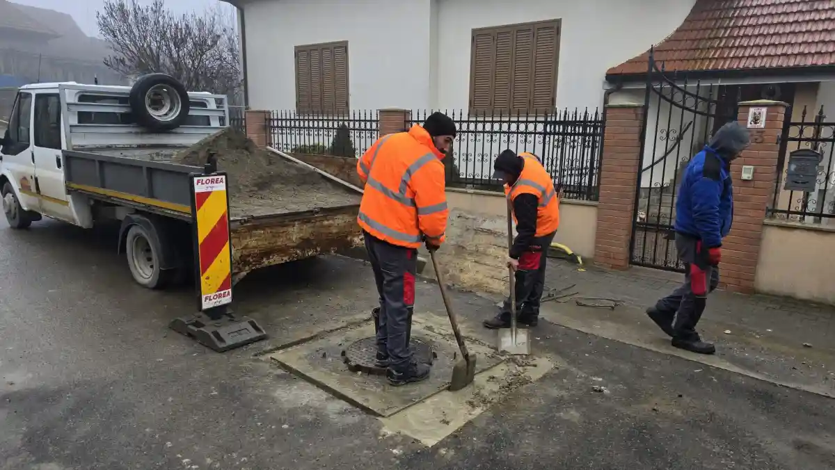 Lucrări reluate la Teiuș, în mai multe zone ale orașului: Se continuă extinderea rețelei de canalizare și se ridică la cotă căminele de canalizare, înainte de asfaltare