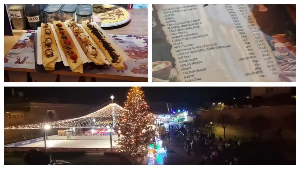 FOTO | Prețuri uriașe la Târgul de Crăciun 2025 de la Alba Iulia: Cât costă mâncarea, vinul fiert, dulciurile și o oră pe patinoar. Comparație cu Târgul de Crăciun din Craiova