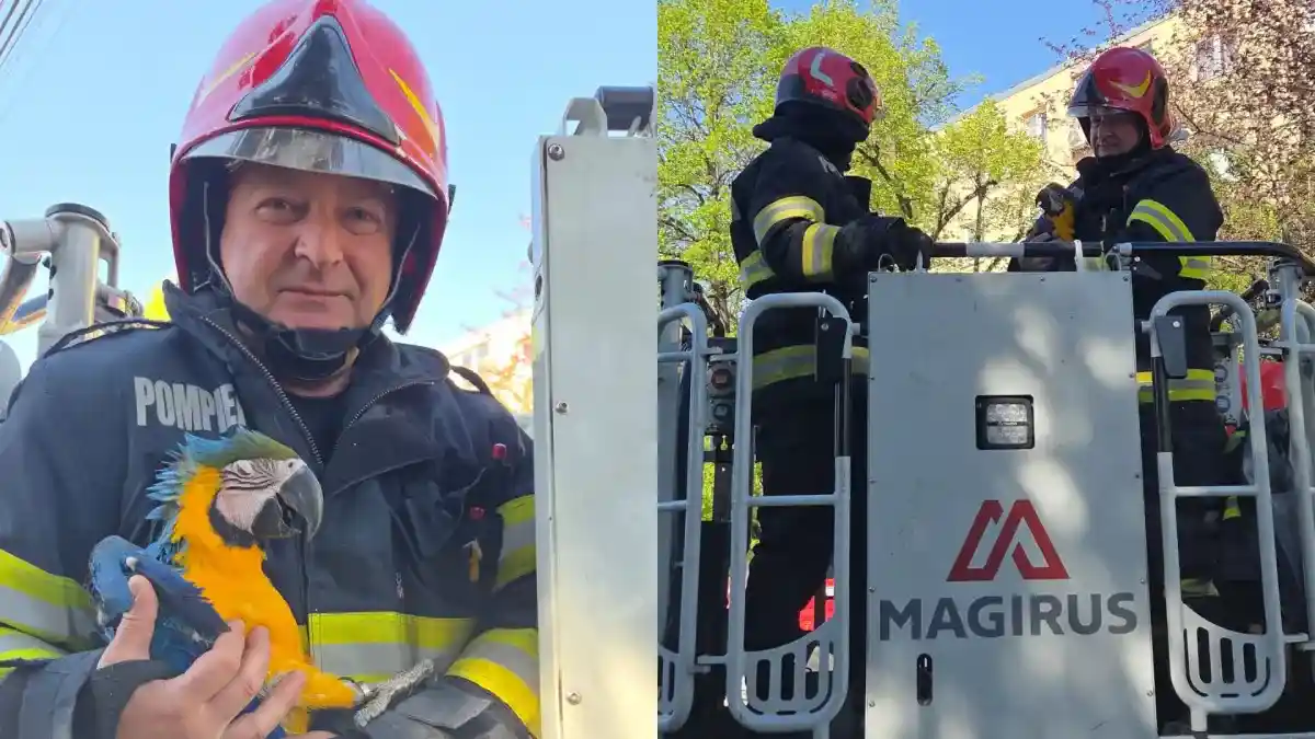 Astfel, la fața locului s-au deplasat pompierii cu o autoscară. Aceștia au urcat la aproximativ 20 de metri și au reușit să salveze papagalul.