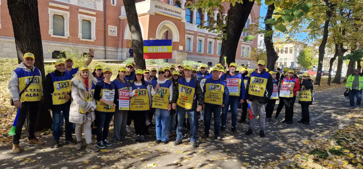 Peste 50 de membri ai Uniunii Teritoriale FSE „Spiru Haret” Alba au participat la protestul național din 29 octombrie 2025, alături de alte zeci de mii de angajați din educație, cerând abrogarea prevederilor din Legea nr. 141/2025 care au dus la scăderi salariale, creșterea normelor didactice și comasări forțate ale unităților școlare.