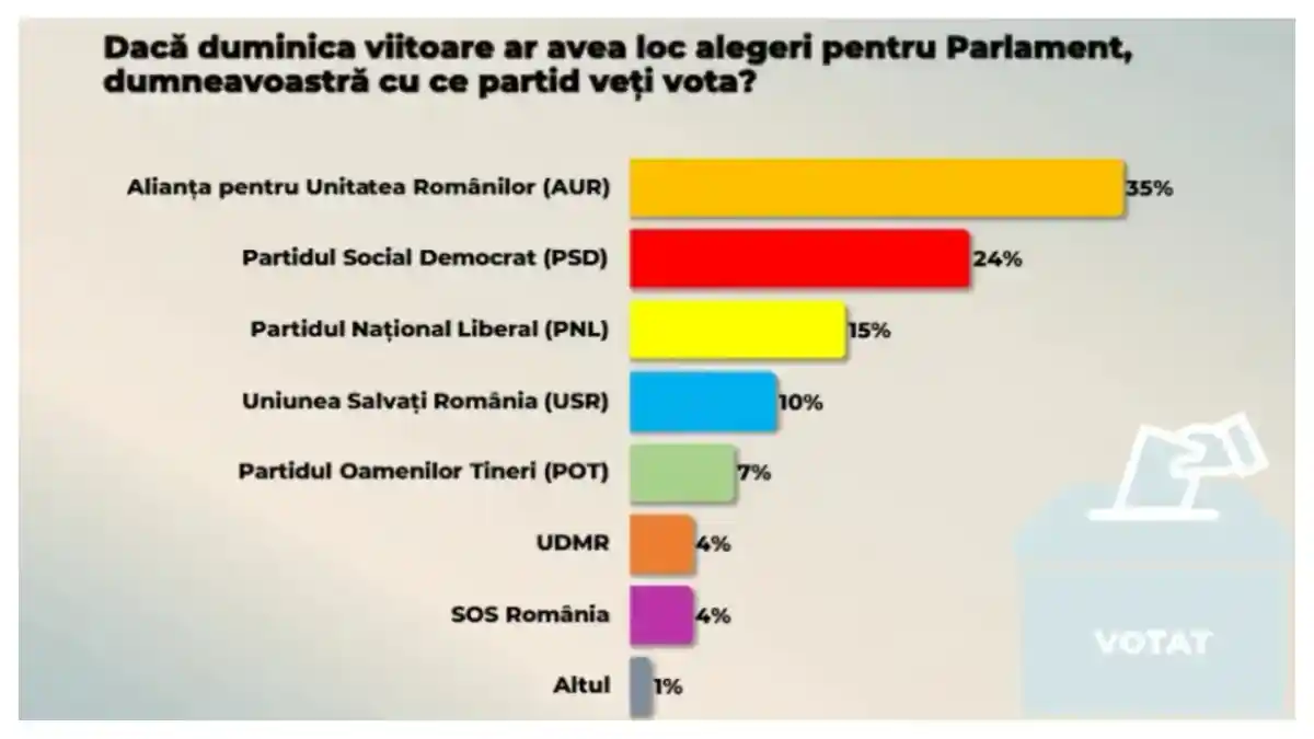 - 35% Alianța pentru Unitatea Românilor (AUR)