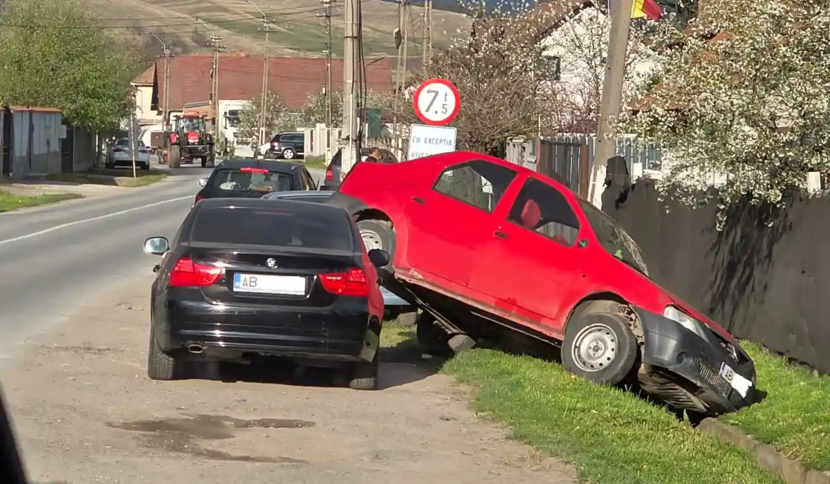 Șoferul autoturismului Dacia a acroșat alte două mașini parcate în afara părții carosabile și s-a oprit în șanțul de la marginea drumului, au declarat pentru ziarulunirea.ro reprezentanții IPJ Alba.