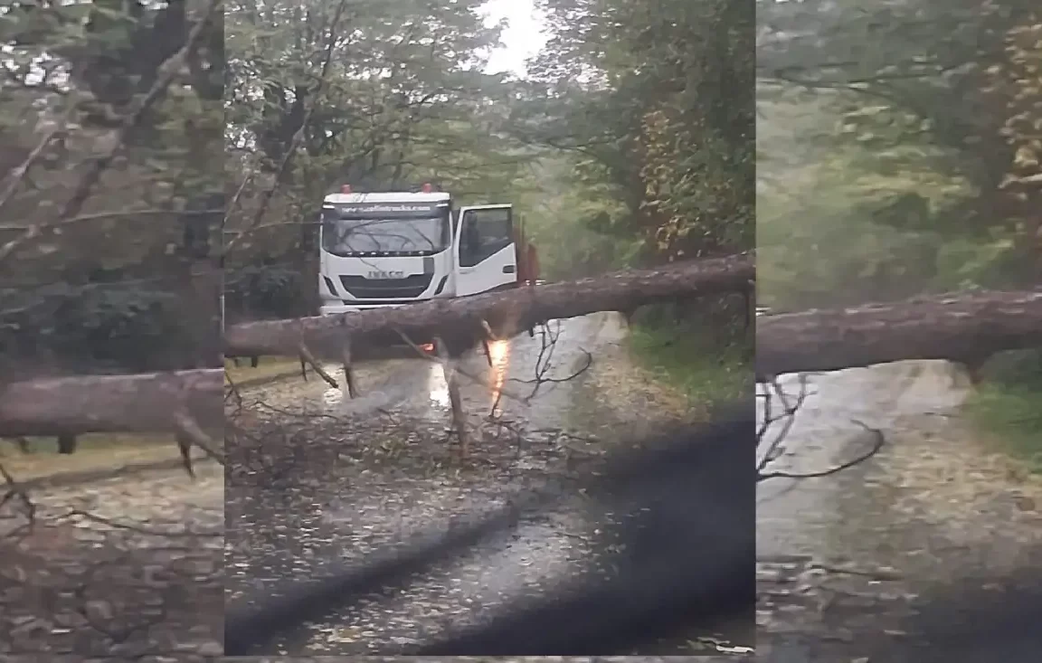 Copac căzut pe drumul de pe Râul Mare din Cugir. Trafic blocat pe ambele sensuri