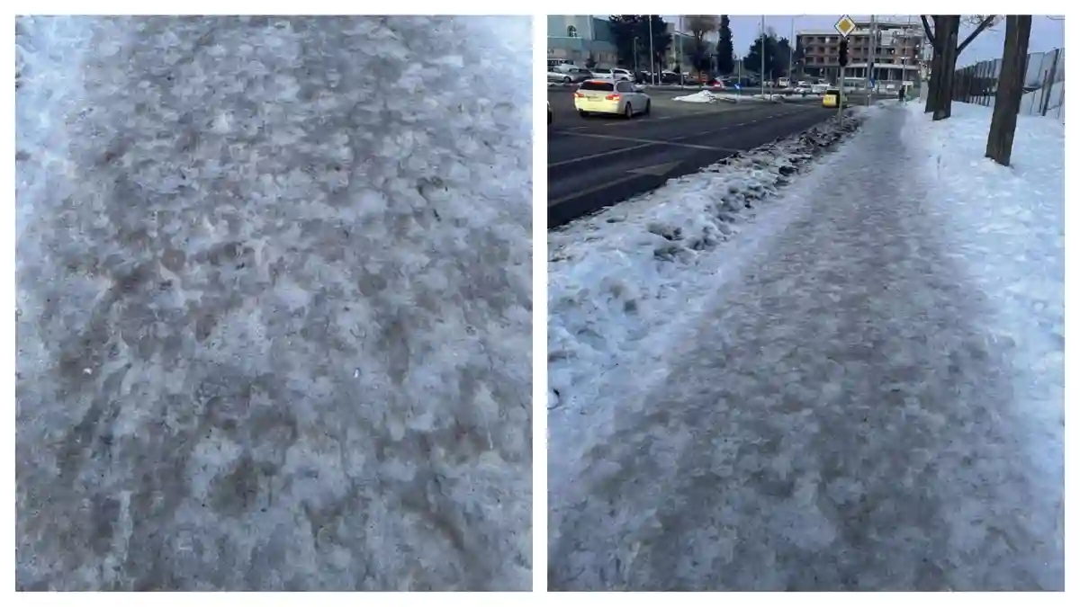 „Este gheață pe pista de biciclete și pe cea destinată pietonilor. Nu intervine nimeni”, a relatat persoana pentru Ziarul Unirea.