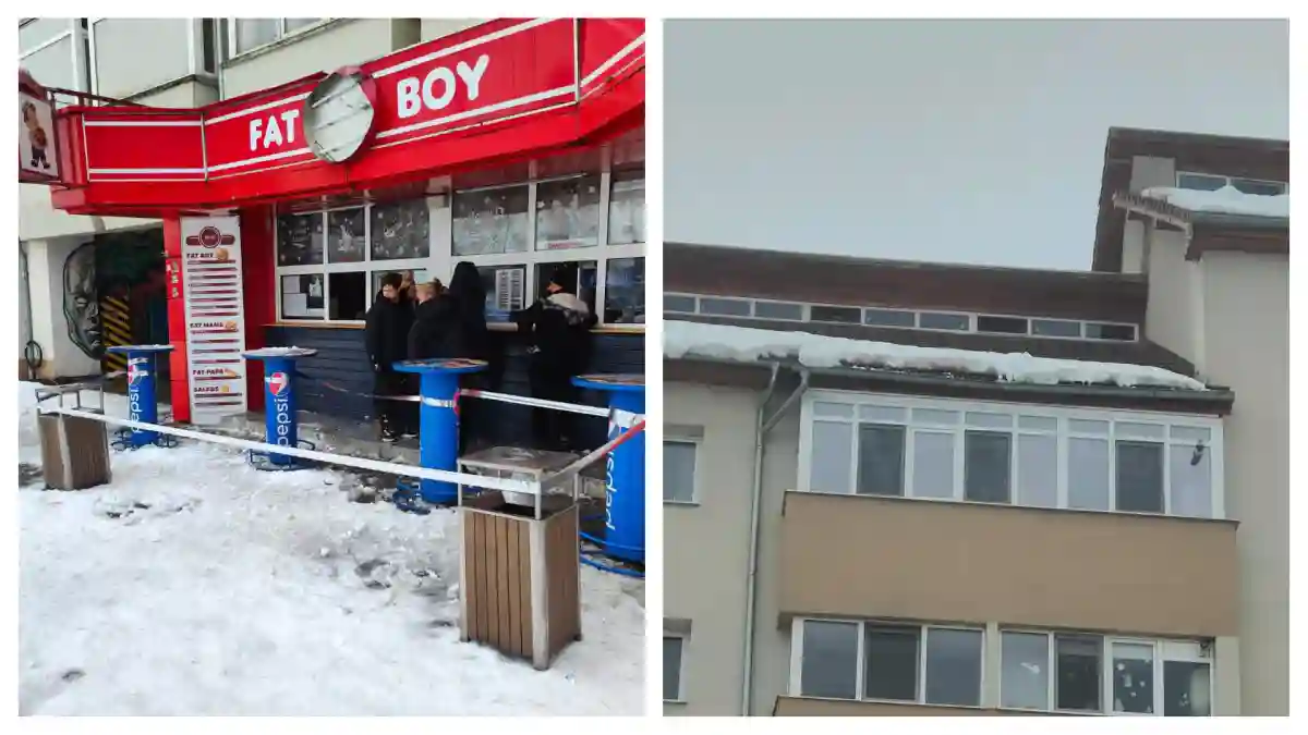 Mai exact, fast-food-ul Fat Boy a publicat două imagini care arată cum reclama a fost avariată în urma impactului cu zăpada căzută de pe bloc. Reprezentanții localului atrag atenția asupra riscurilor din zonă și îi avertizează pe pietoni să fie foarte atenți. Ei recomandă păstrarea unei distanțe față de clădiri în acea zonă.