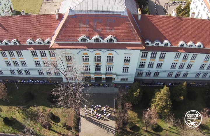 FOTOGRAFII şi VIDEO AERIENE: MAREA ÎMBRĂŢIŞARE la Colegiul HCC din Alba Iulia. La 95 de ani de la înfiinţare, elevii şi profesorii şi-au îmbrăţişat liceul, la propriu