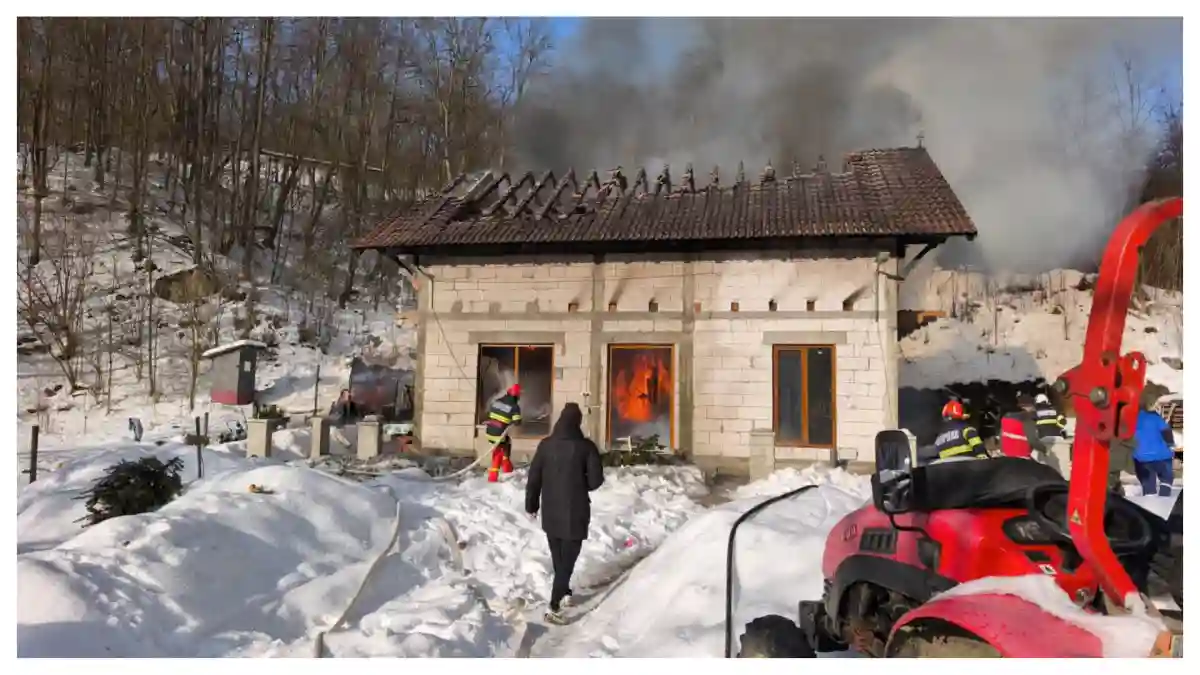 Pompierii din Sebeș intervin cu două autospeciale la un incendiu izbucnit la o locuință din comuna Ceru Băcăinți, astăzi, 20 ianuarie 2026.