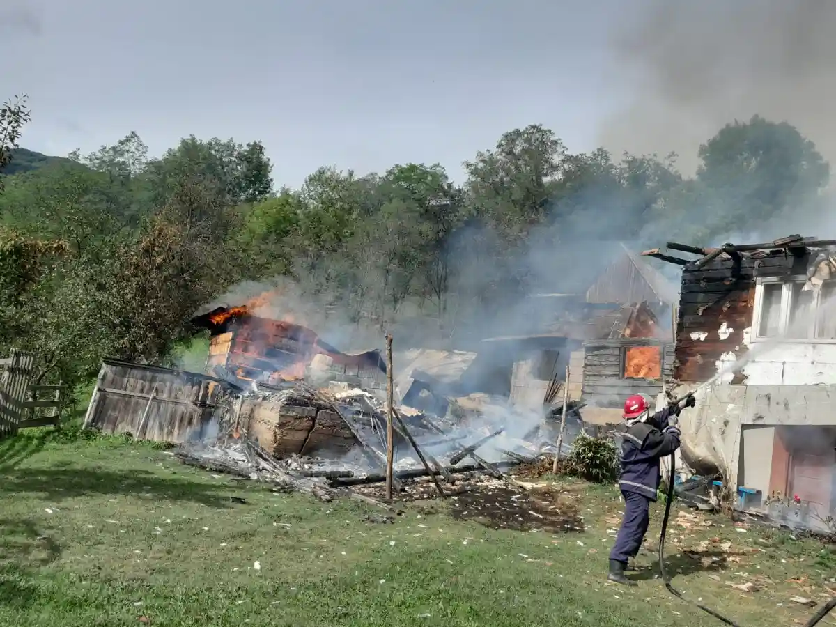 UPDATE FOTO | INCENDIU în comuna Sălciua: Arde o casă și două anexe gospodărești din satul Valea Largă