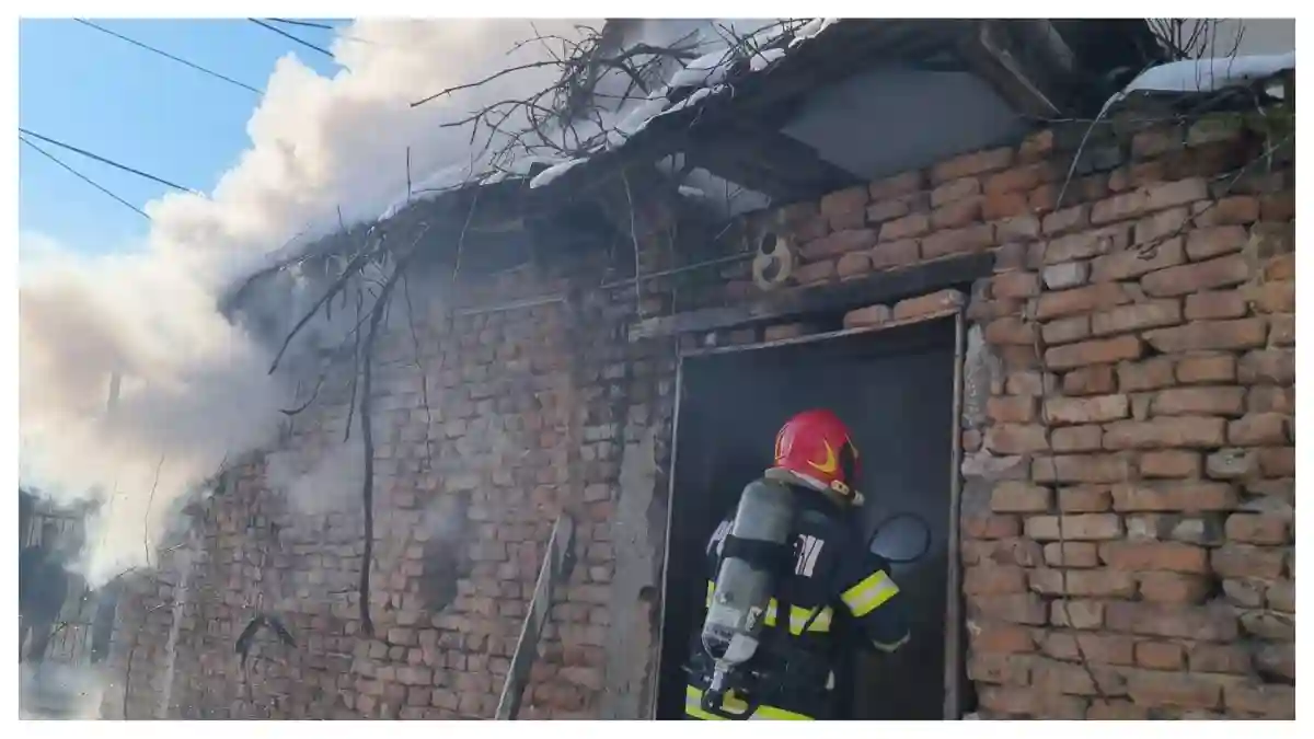 Pompierii din Sebeș intervin cu două autospeciale pentru stingerea unui incendiu izbucnit la o locuință, pe strada Izvorului, astăzi, 17 ianuarie 2026.