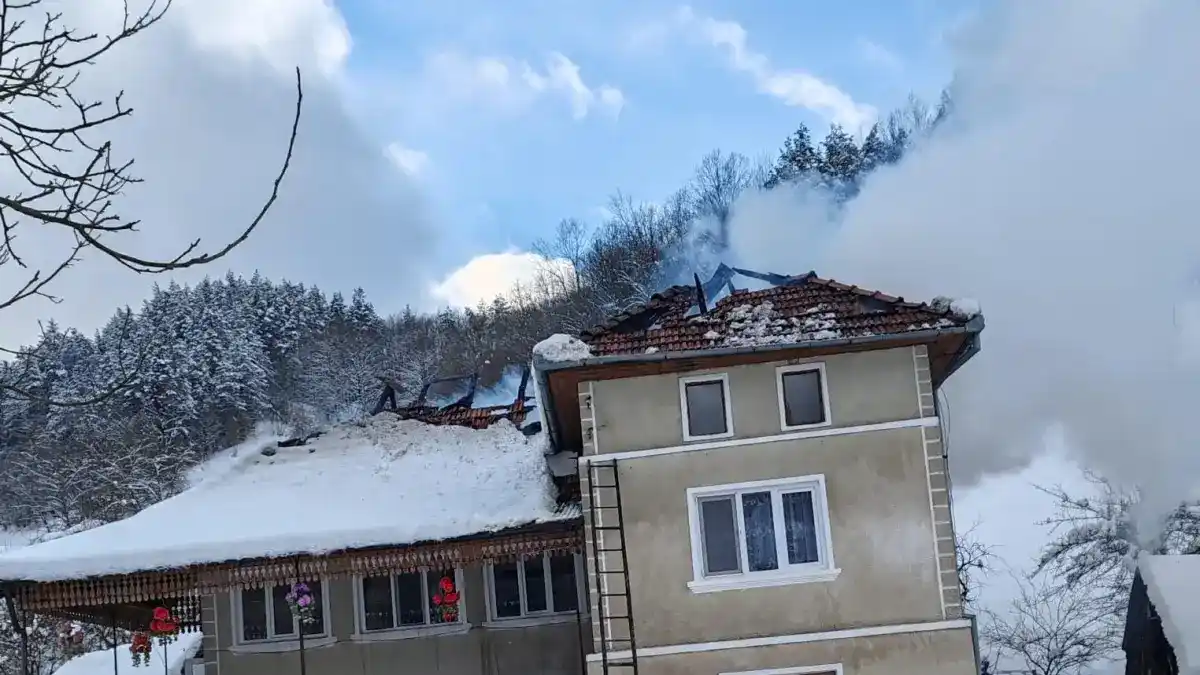 Forțele de intervenție au ajuns la locul producerii incendiului. Incendiul se manifestă la acoperișul casei pe o suprafață de aprox 100 mp.