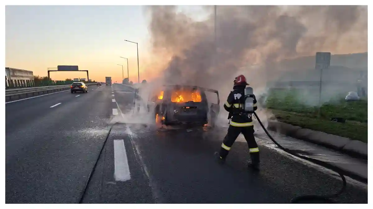 Incendiu izbucnit pe A1, sensul Sebeș-Orăștie! Flăcările au cuprins un autoturism – Pompierii intervin de urgență