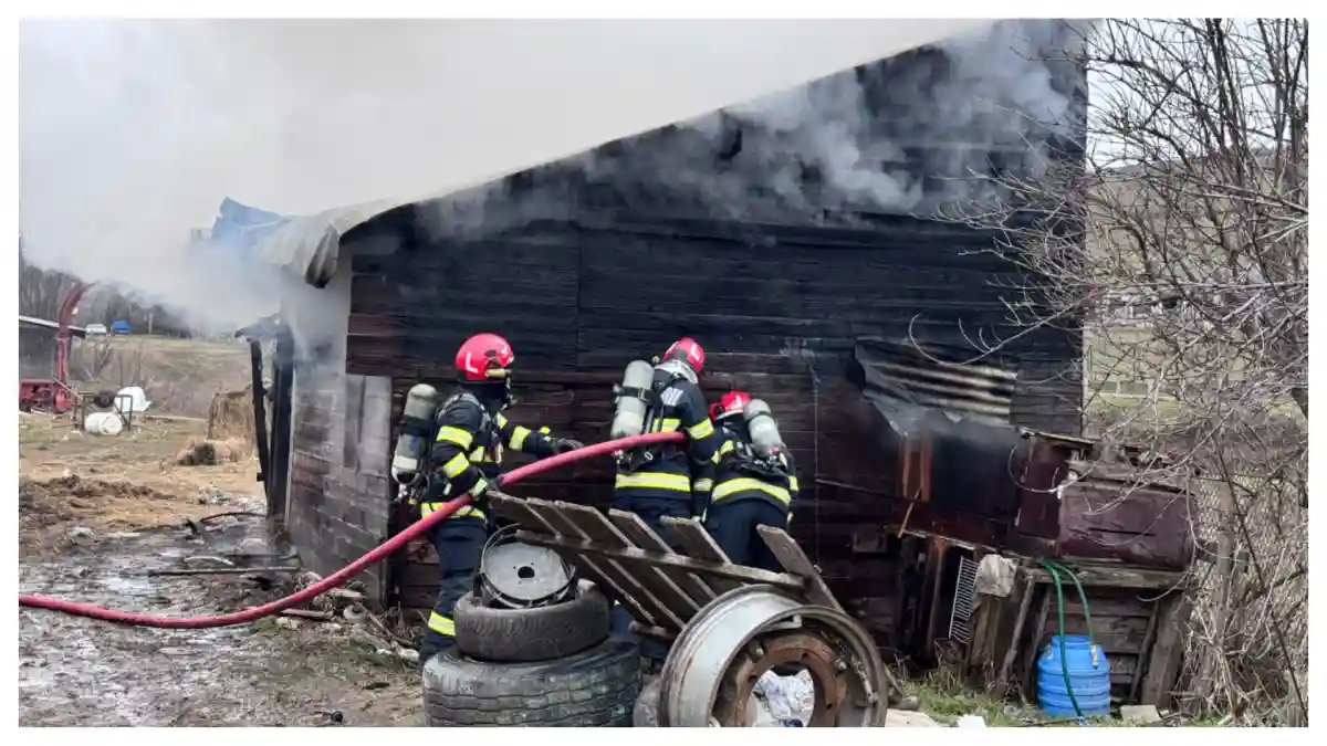 Din informațiile preliminare, este vorba despre un incendiu izbucnit la o anexă gospodărească.