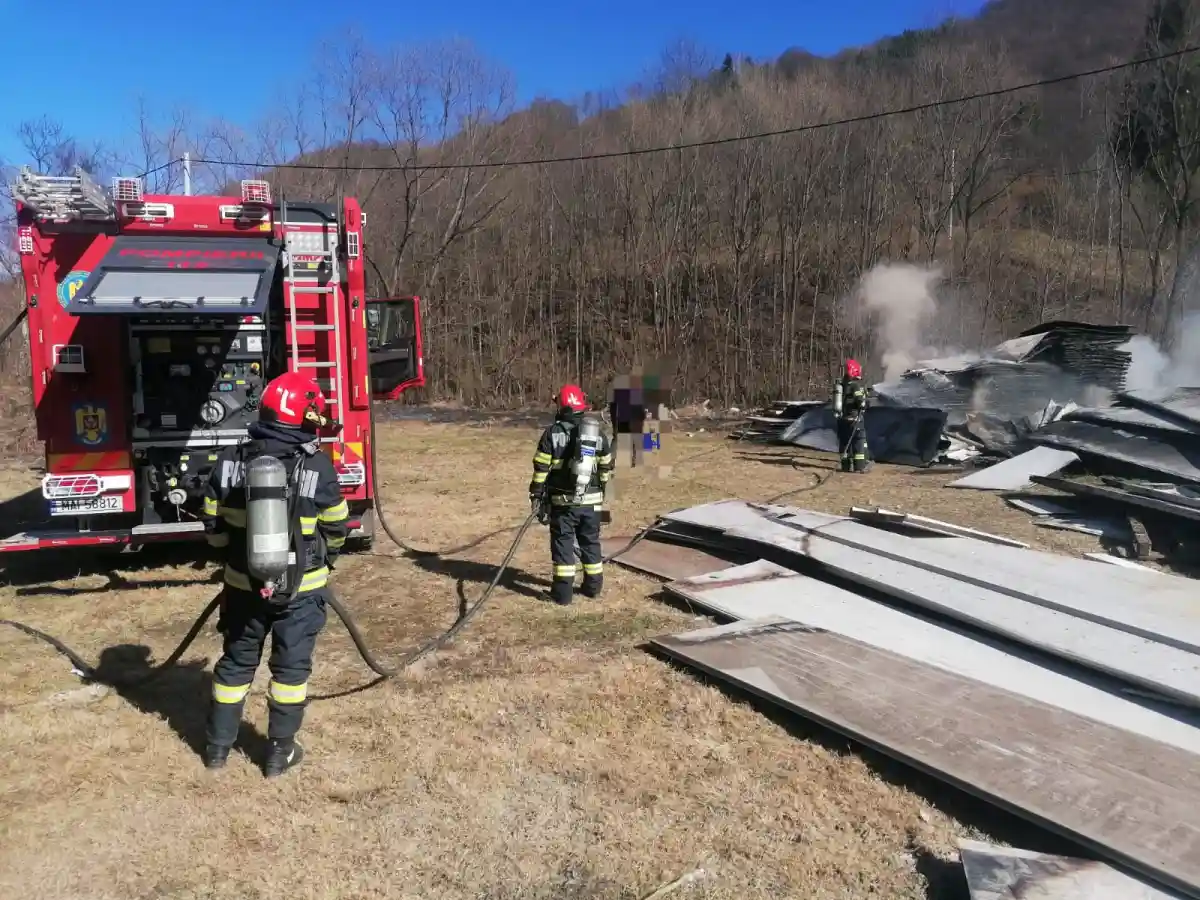 Secția de pompieri Câmpeni intervine pentru stingerea unui incendiu in sat Valea Barnii, Mogos.
