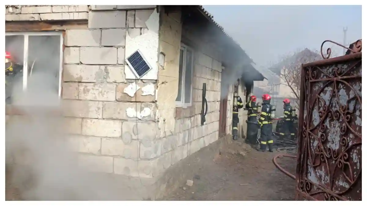 Incendiul se manifesta la o locuință si o anexă gospodărească pe o suprafață totală de aproximativ 70 mp.