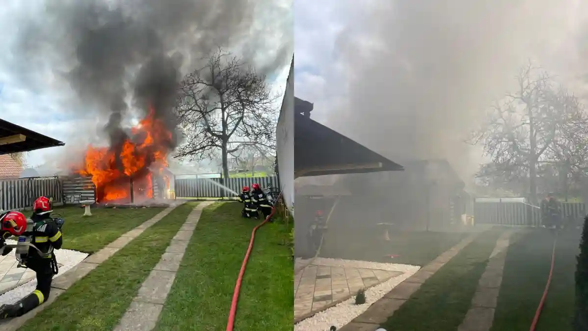 De asemenea, din interiorul anexei au fost evacuate și 2 butelii de către pompierii militari.