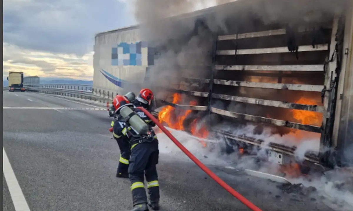Un autotren care transporta cauciucuri a luat foc miercuri pe autostrada A1, la nodul rutier Sebeș-Sibiu. Detașamentul de pompieri Sebeș a intervenit prompt pentru stingerea incendiului, alocând o autospecială de stingere cu apă și spumă și un echipaj de prim ajutor.