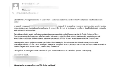 O firmă din județ a rămas fără 12.000 de euro în cont! Mesajul de apreciere transmis după ce IPJ Alba a rezolvat problema: ,,O sursă de motivație pentru următorul caz”
