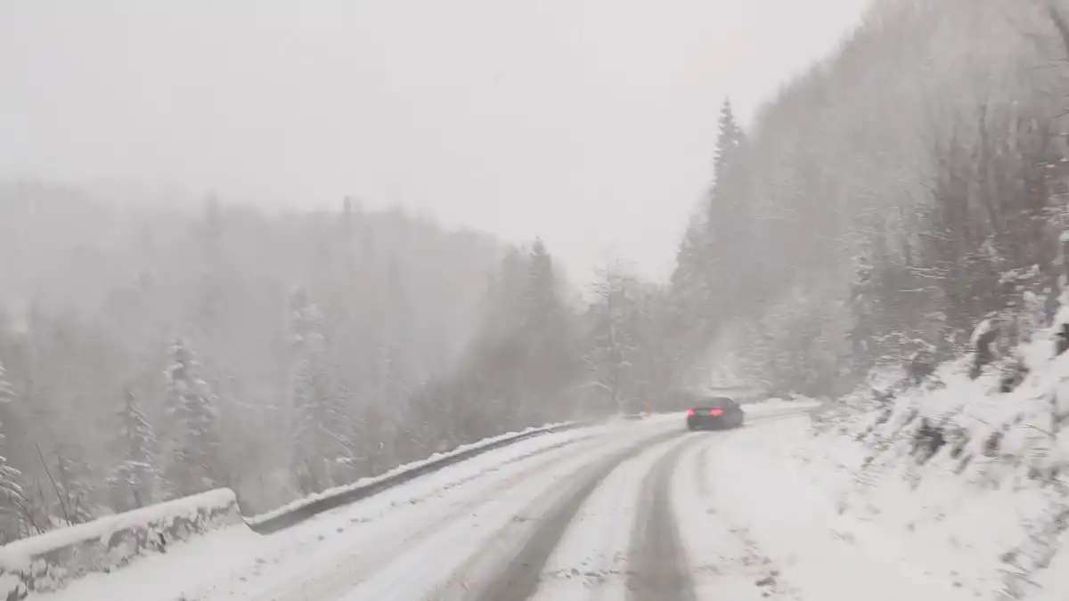 VIDEO | Ninsoare abundentă pe DC 260, la Gârda de Sus: Echipaje de poliție și de deszăpezire în teren, pentru siguranța participanților la trafic