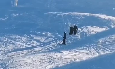 VIDEO | Imagini VIRALE de pe o pârtie din România: O femeie în fustă, coborâtă de un jandarm din zona destinată schiorilor. ,,Pârtia de schi nu este podium de modă”