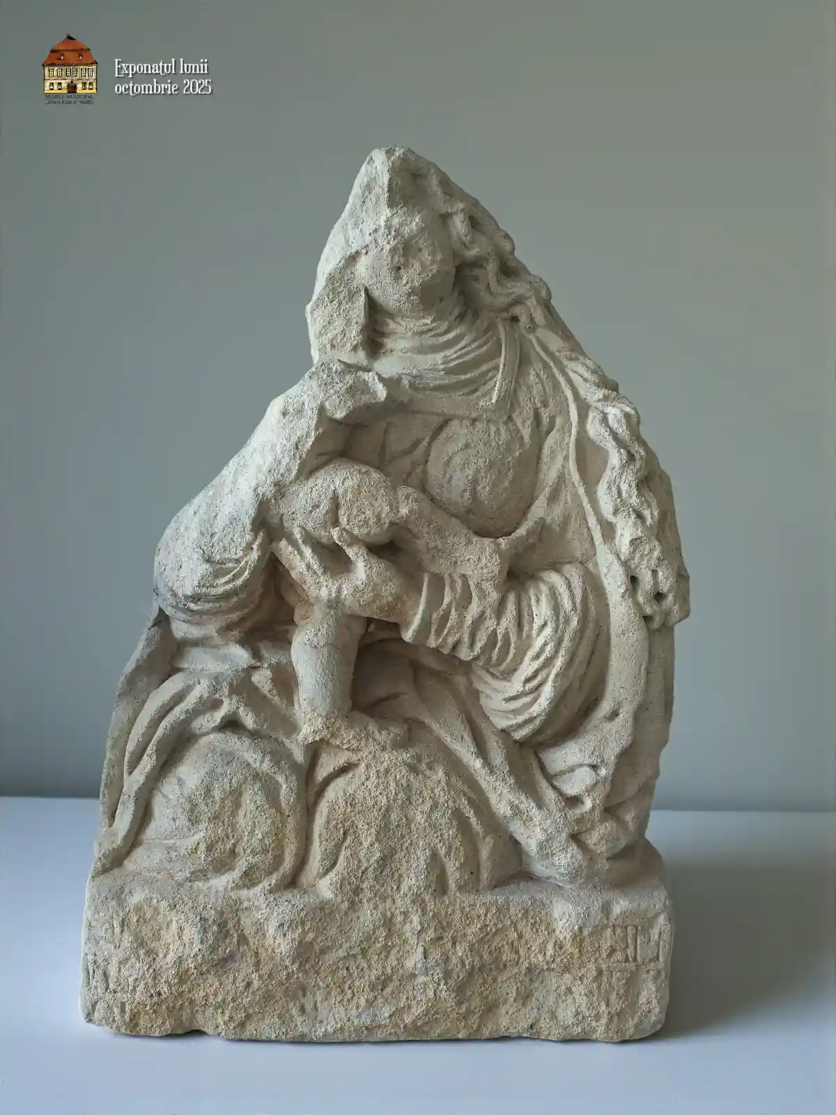 O statuie din piatră care o reprezintă pe Fecioara Maria cu Pruncul în brațe, din secolul al XV-lea, exponatul lunii octombrie la Muzeul Municipal „Ioan Raica” Sebeş