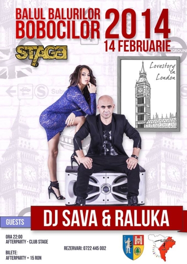 DJ Sava şi Raluca vor concerta vineri, 14 februarie în Club Stage din Alba Iulia, petrecerea fiind organizată după concursul de la Casa de Cultură a Sindicatelor care va reuni bobocii câştigători, de la Balurile Bobocilor 2013, din judeţul Alba.