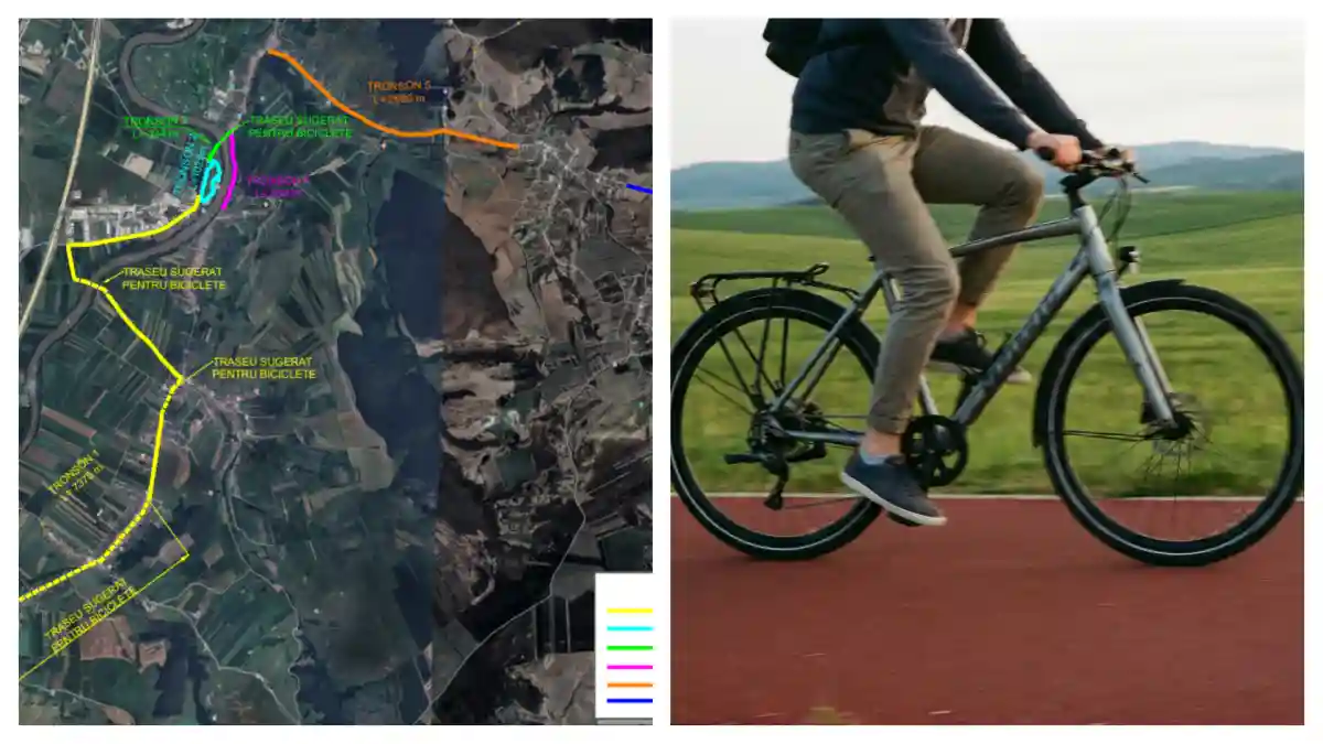 - Se propune amenajarea unei piste/traseu sugerat pentru biciclete cu sens bidirectional, amplasata alternativ pe partea stanga sau dreapta a drumurilor judetene DJ 107C si DJ107 respectiv a drumului comunal DC307, cu o lungime de 7375m(Tronson 1);